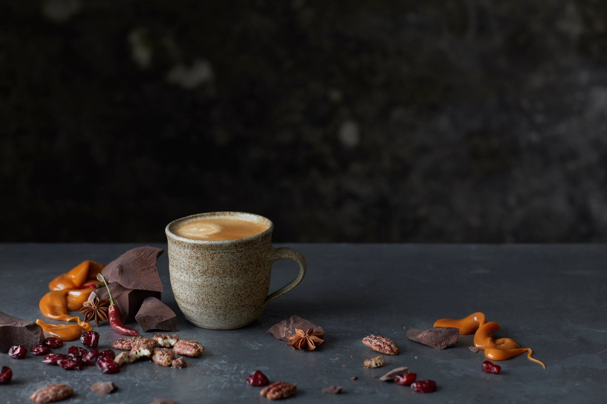 Daterra single origin has tasting notes of Caramel, Pecan, Dried Cherries, and Spicy Chocolate.