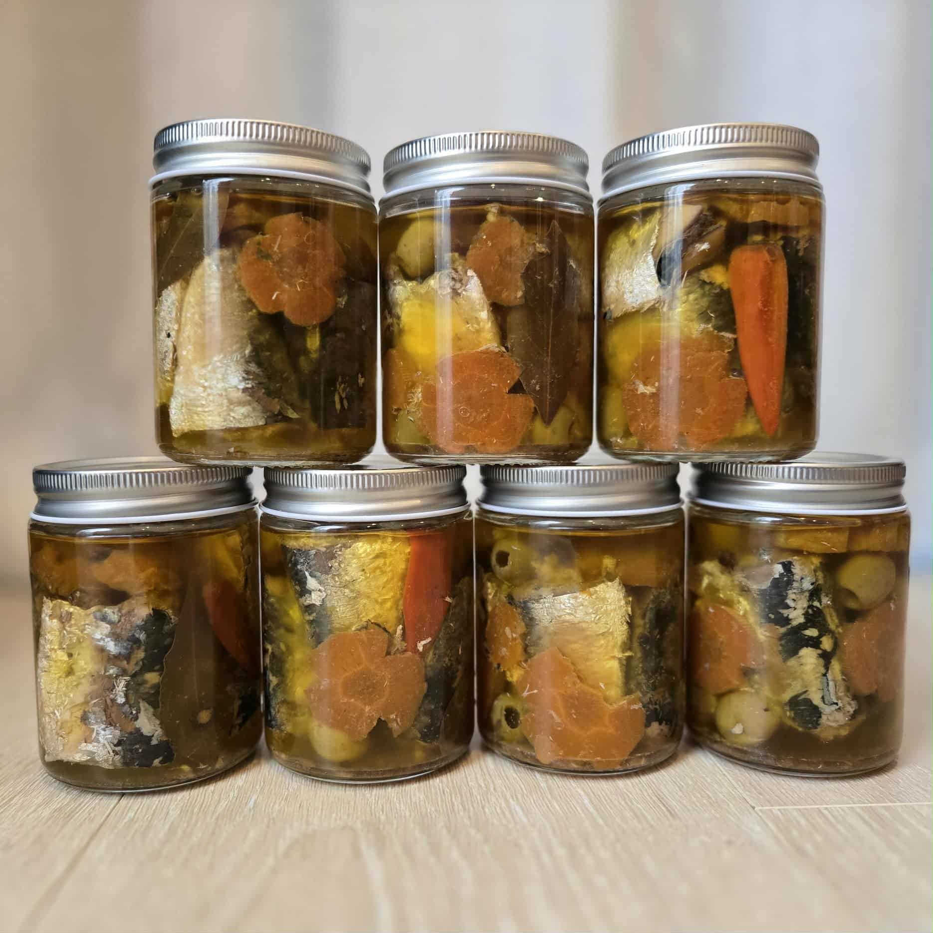 Handcrafted in small batches, The Fish Kitchen's Spanish Sardines are simmered in premium olive oil with carrots, peppercorns, olives, bay leaf, and a blend of herbs and spices. Each jar is packed with rich, savory flavor and a hint of Mediterranean warmth—perfect on toast, pasta, or straight from the jar. Handcrafted goodness in every bite!