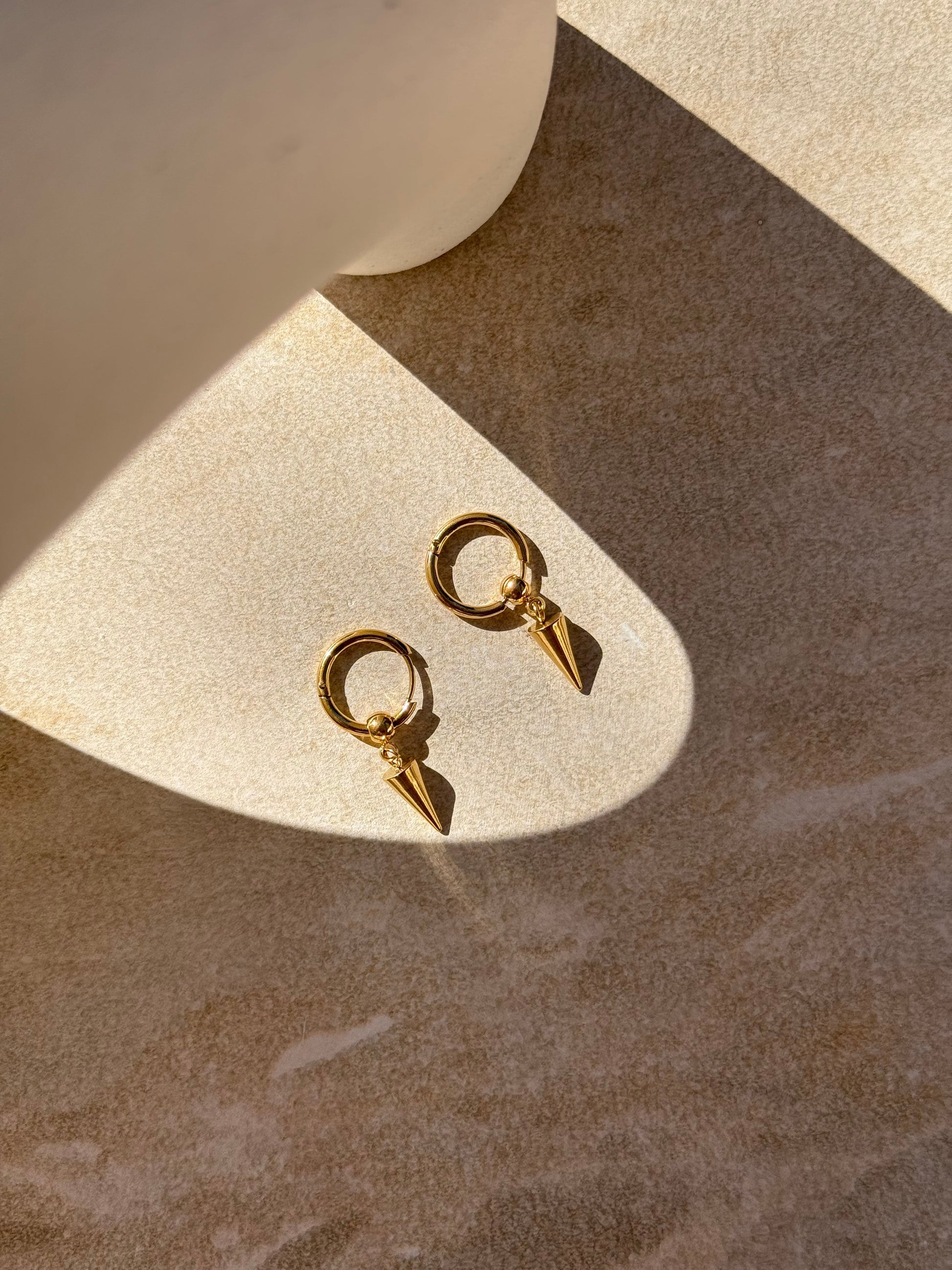 Wero Ngira embodies strength and precision, inspired by the Māori concept of wero a challenge that demands presence and power. Featuring a sleek, tapered point, these Huggies symbolize resilience, sharp intuition, and unwavering determination.