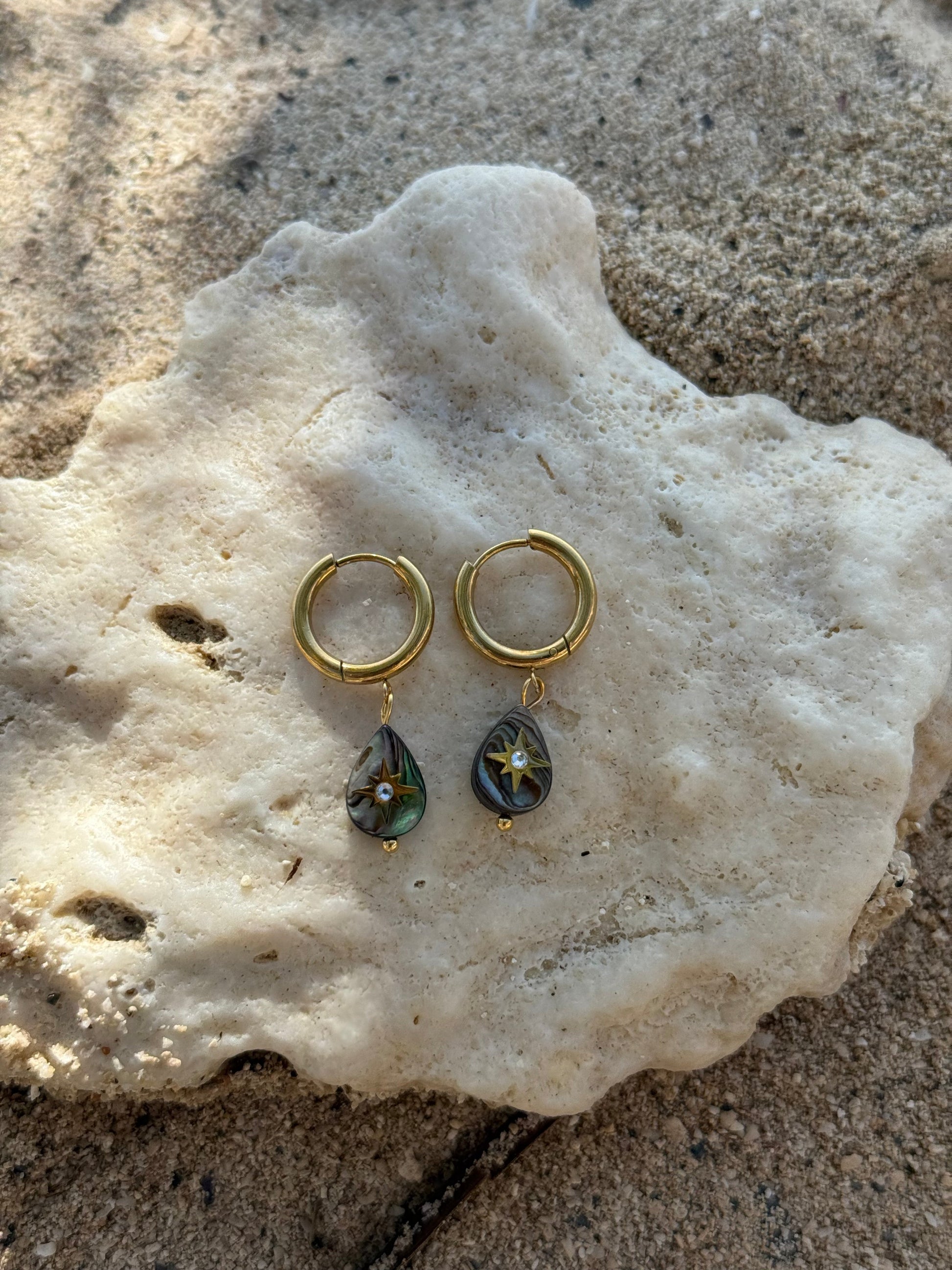 Inspired by the shape of falling tears and the shimmering ocean at dawn, these huggies are part of The Waves We Ride collection made to carry your light wherever you go.